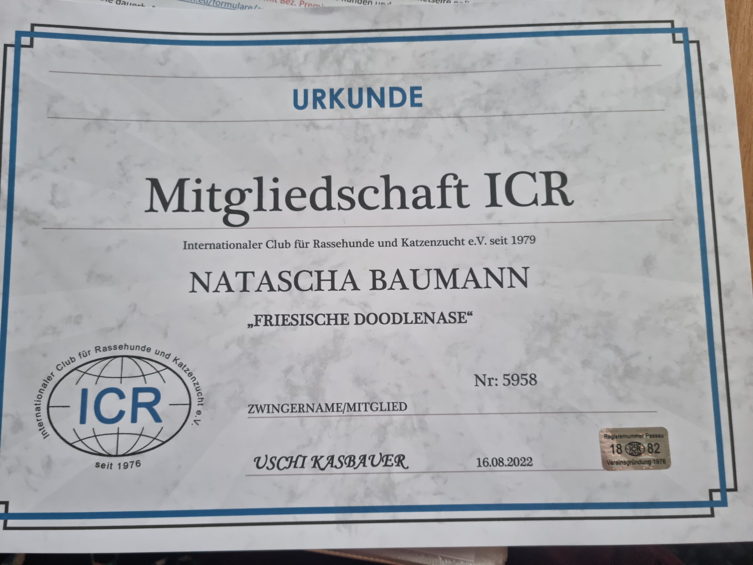 Wir sind Mitglied und zertifizierter Züchter im Zuchtverband des ICR.